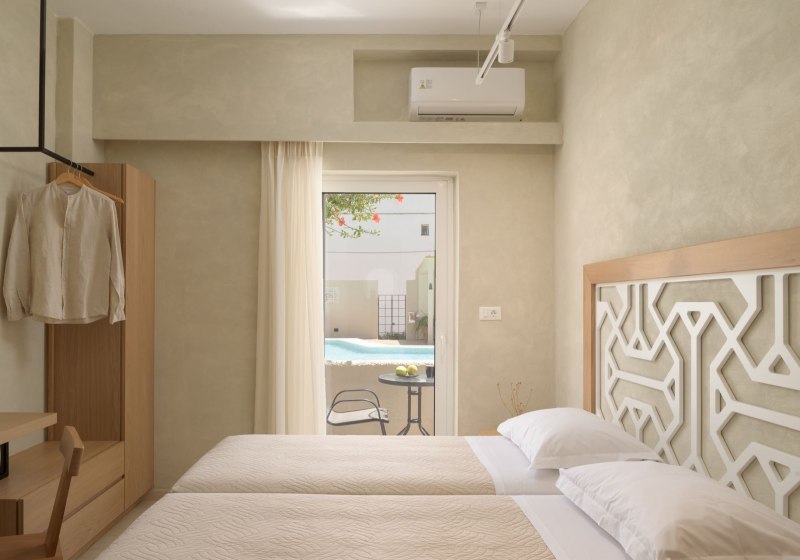 Die Zimmer sind funktional ausgestattet: Klimaanlage oder Heizung, WLAN, Safe, TV und ein Minikühlschrank schaffen verlässlichen Komfort. Ein Balkon oder eine Terrasse erweitert den Raum nach draußen. Für ruhigen Schlaf helfen schallisolierte Elemente, während optionale Kinderbetten Familien entlasten.