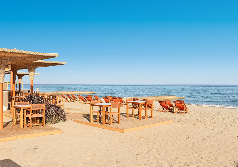 - Strandsetup: Liegen und Schirme direkt am hoteleigenen Strandbereich.