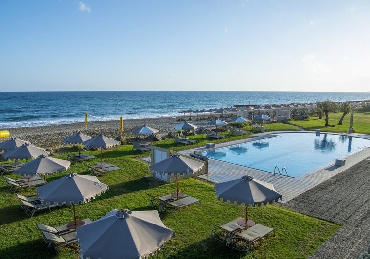 Die Lage überzeugt durch Klarheit: Direkt am 500 Meter langen Sand- und Kiesstrand, mit einer Bushaltestelle unmittelbar vor dem Resort. Nach Rethymnon sind es etwa sieben Kilometer. Ihr erreicht den Flughafen Chania nach rund 68 Kilometern, den Flughafen Heraklion nach etwa 80 Kilometern. Bars, Restaurants und Einkaufsmöglichkeiten liegen in einem Radius von ungefähr 100 Metern; eine Apotheke ist rund 300 Meter entfernt.