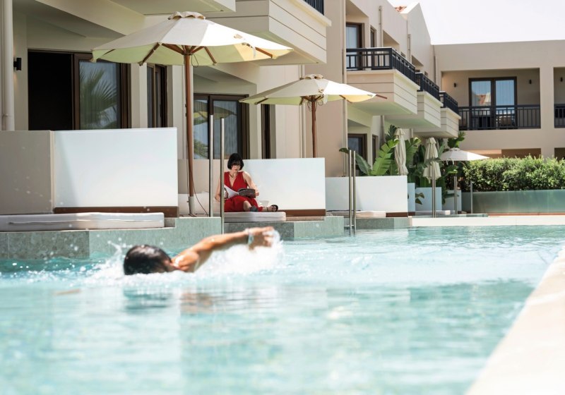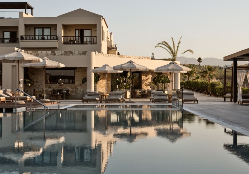 Asterion Suites & Spa - Designed for adults by Louis Hotels steht für eine ruhige, erwachsene Auszeit direkt am Sand-/Kiesstrand nahe Chania. Mit 67 Zimmern und Suiten, inklusive Swim-up- und Privatpool-Optionen, sowie Spa, Fitness und Live-Musik ist die Ausrichtung klar und fokussiert. Highlight: Direkte Strandlage und adults-only Konzept ab 16 Jahren.
