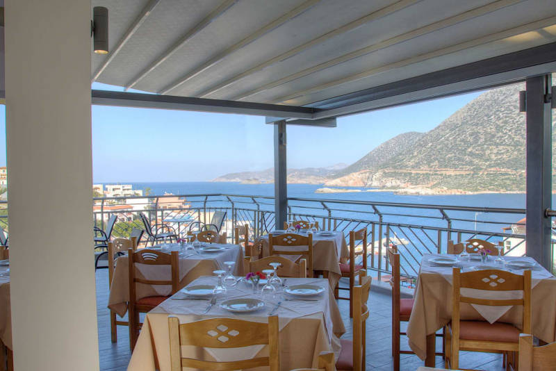 Das gastronomische Angebot des Aparthotel Athina beinhaltet ein Buffetrestaurant mit Panoramaterrasse und eine saisonale Poolbar, die auch als Snackbar genutzt werden kann. Die vom Hotel angebotene Halbpension umfasst ein Frühstücksbuffet und ein Abendessen nach Menüwahl.Ausstattung