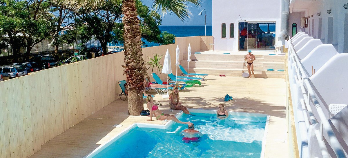 Die Nähe zu Bars und Clubs in Hersonissos bringt Abwechslung, wenn Ihr abends lebhaftere Stimmung sucht. Durch die zentrale, strandnahe Position entscheidet Ihr flexibel zwischen ruhigen Poolstunden und Ausgehen in der Umgebung. Kinderangebote sind nicht vorgesehen, da das Hotel ausschließlich Erwachsene beherbergt.