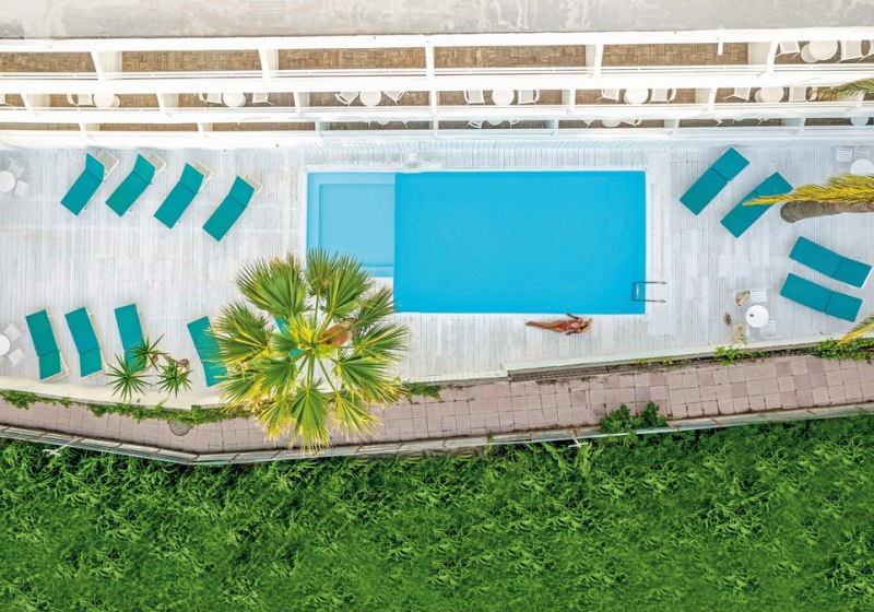 Im Azure Mare Hotel wohnt Ihr direkt am Hauptstrand von Hersonissos und startet in einen Erwachsenen-Retreat mit klarer Linie. Das Haus konzentriert sich auf Ruhe und Strandnähe, die Gemeinschaftsbereiche sind kompakt organisiert. Ihr gleitet vom Frühstück in den Tag, nehmt Euch am Pool eine Liege und bleibt nah am Meer. Der Service ist präsent, ohne aufdringlich zu wirken.