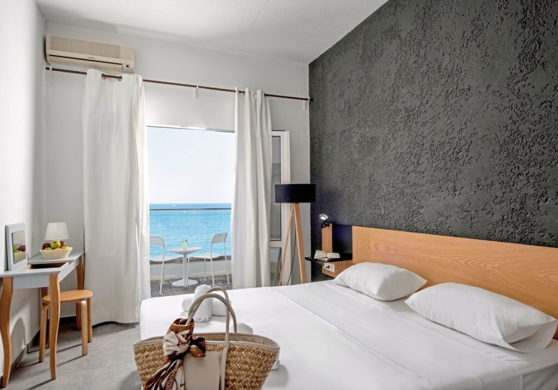 Je nach Kategorie blickt Ihr seitlich auf das Meer oder direkt aufs Wasser; teils zeigt sich auch der Poolbereich. Ihr wählt zwischen Doppel-, Twin- oder Einzelbetten, alle Zimmer sind Nichtraucher. Die klare Linie passt zur ruhigen Adults-only-Ausrichtung und zur unmittelbaren Strandlage.
