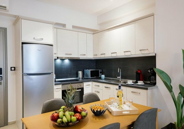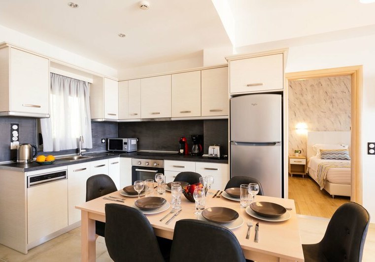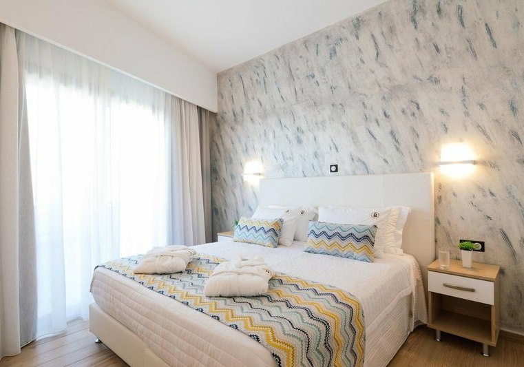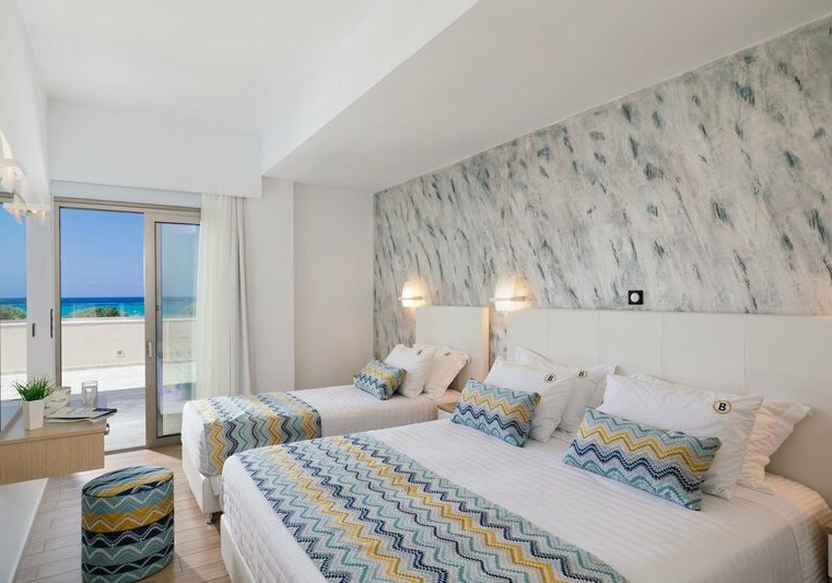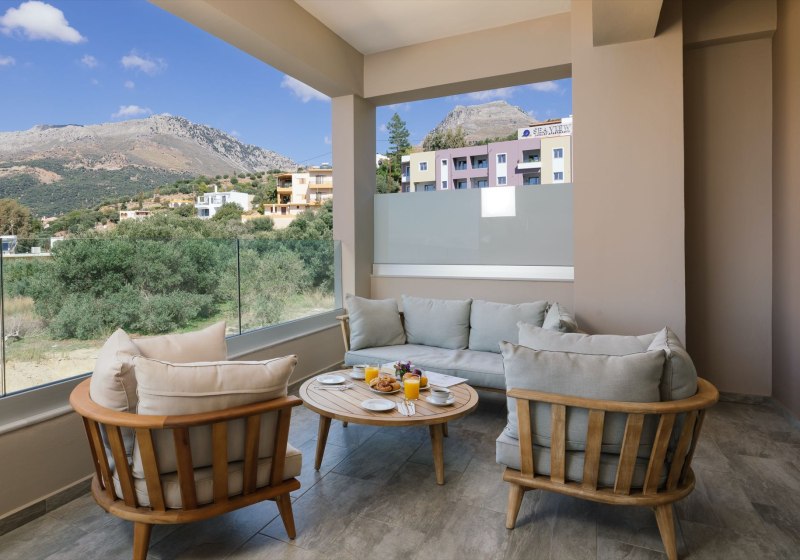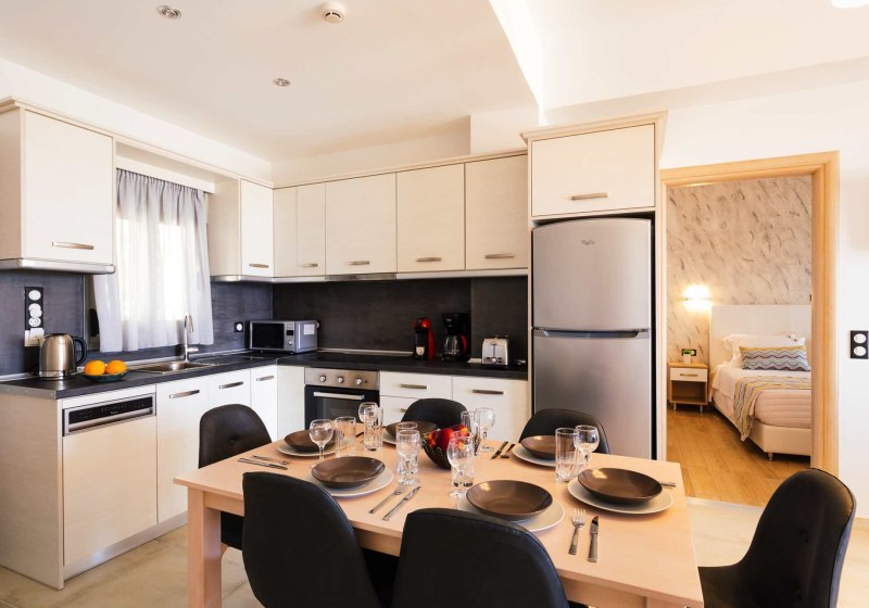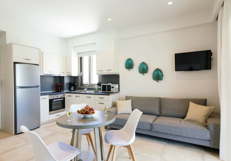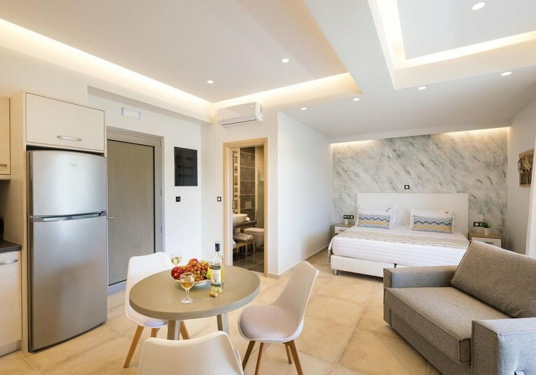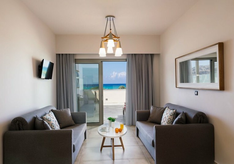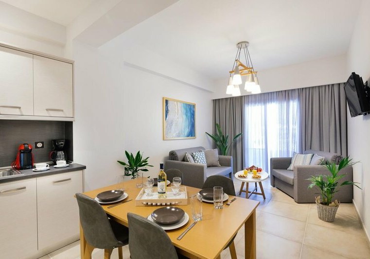 Die Suiten, Apartments und Juniorsuiten sind auf Komfort und Selbstbestimmtheit ausgelegt – mit Küche, Sitzecke und Balkon oder Terrasse. WLAN ist inklusive, Sonnenliegen und Schirme warten am Pool. Bars und Tavernen erreicht Ihr bequem zu Fuß. Highlight: Strandnahe Apartments mit Serviceplus, ideal für flexible Genießer in den Ferien.