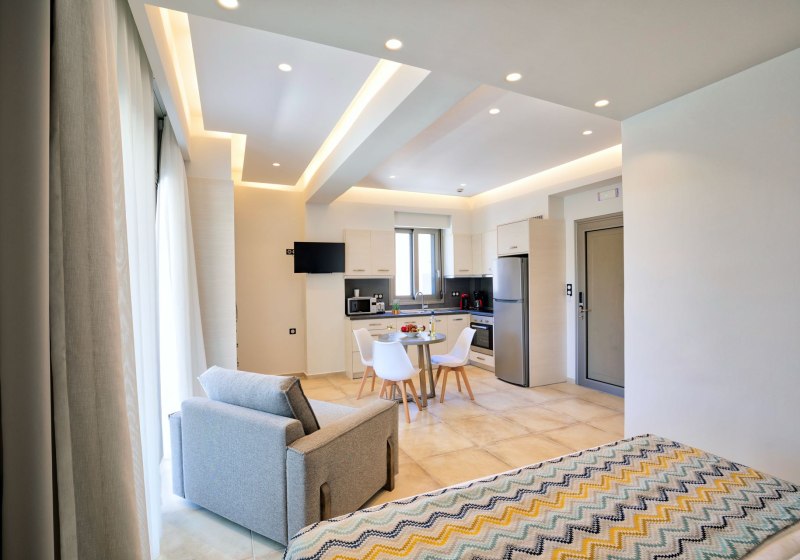 - Kluge Grundrisse: Juniorsuiten mit Küche, Sitzecke und offenem Schlafbereich.