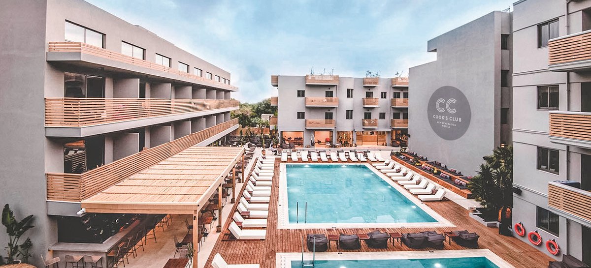 Im Cooks Club Hersonissos Crete wohnt Ihr mitten in Hersonissos – urban, lebendig und bewusst erwachsen. Das Haus setzt auf klare Linien, frische Beats und entspannte Tage zwischen zwei Außenpools und sonnigen Terrassen. Mit Adults-only-Konzept ab 18 Jahren richtet sich die Atmosphäre an Paare, Freundesgruppen und Städtereisende, die Musik, gutes Essen und kurze Wege schätzen.