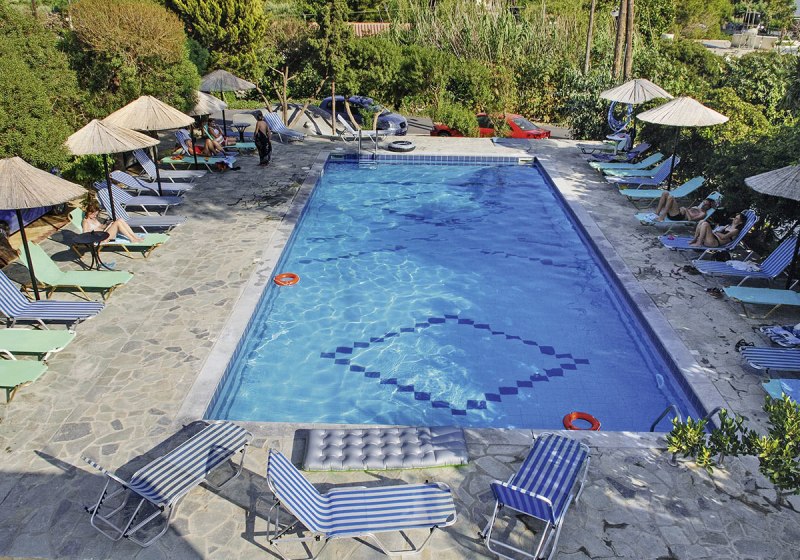 Coral kombiniert eine ruhige Seitenstraße mit 500 Metern zum Strand und zum Ortskern. Ihr lebt kompakt: Pool, Sonnenterrasse, Snackbar, Restaurant und WLAN im ganzen Haus. Die Zimmer bleiben funktional, mit Klimaanlage, Kühlschrank, Dusche/WC und Balkon oder Terrasse – klar strukturiert für einfache Tage.