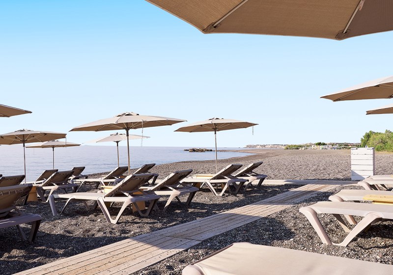 - Strandkomfort: Liegen, Schirme, Strandbar und Umkleidekabinen direkt am Meer.