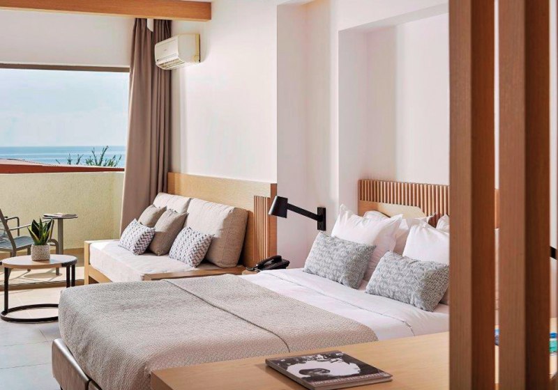 Zimmer mit Balkon oder Terrasse, Juniorsuiten mit Meerblick und Suiten mit Verbindungstür geben Struktur für Paare und Familien. Dazu kommen Liegen und Schirme am Strand sowie ein verlässlich geführter Service – eine stimmige Basis für eure nächsten Ferien am Meer.