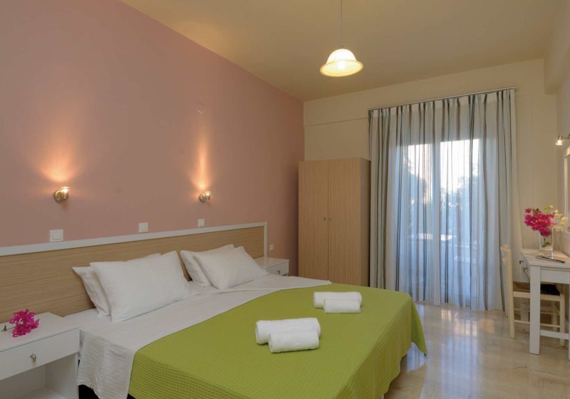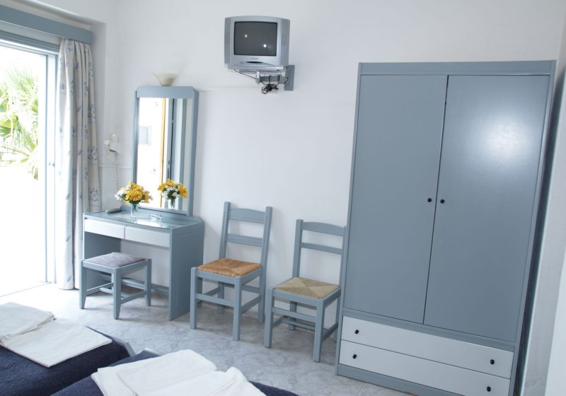 Ihr wählt zwischen Zimmern, Studios und Apartments. Alle verfügen über Dusche/WC, Föhn und Fliesenboden, dazu Sat-TV, Kühlschrank und Wasserkocher. Ein Balkon öffnet den Blick in die Anlage. Klimaanlage ist auf Anfrage und gegen Gebühr verfügbar. Die tägliche Zimmerreinigung schafft Verlässlichkeit, wenn Ihr den Strand oder den Pool priorisiert.