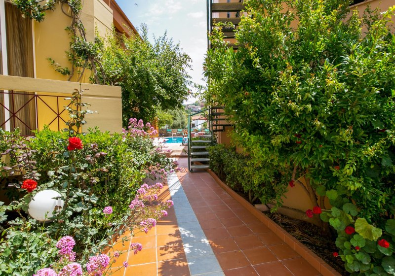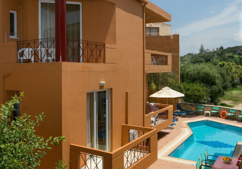 Jedes Zimmer verfügt über einen Balkon – ein angenehmer Rückzugsort nach Strand oder Stadtbummel. Die Anlage zählt 29 Doppelzimmer und 1 Einzelzimmer, insgesamt 30 Einheiten. Der klare Zuschnitt erleichtert Euch den Tag: kurz zurück ins Zimmer, kurz frisch machen, weiter an den Pool oder hinauf zum Abendessen auf der Dachterrasse.