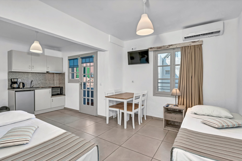 Mit 31 renovierten Zimmern, die in Größe und Ausstattung variieren, hat das Erato Hotel für jeden Geschmack etwas dabei. Alle Zimmer verfügen über WLAN, einen Safe und eine individuell regulierbare Klimaanlage. Es stehen sowohl Doppel-, Einzelzimmer, 3-Bett-Zimmer und Juniorsuiten zur Verfügung.