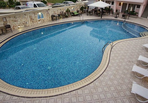 Im Mittelpunkt steht der Außenpool, ergänzt durch einen separaten Kinderpool. Hier zieht Ihr in ruhiger Umgebung Eure Bahnen oder legt kurze Erfrischungspausen ein. Die klare Struktur der Liegebereiche macht es leicht, zwischen Sonne und Schatten zu wechseln.
