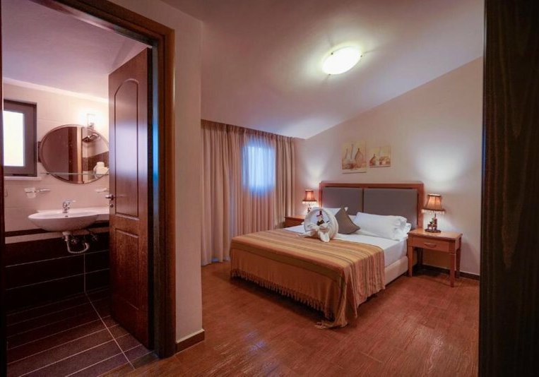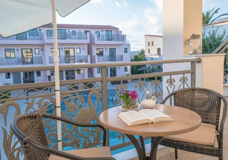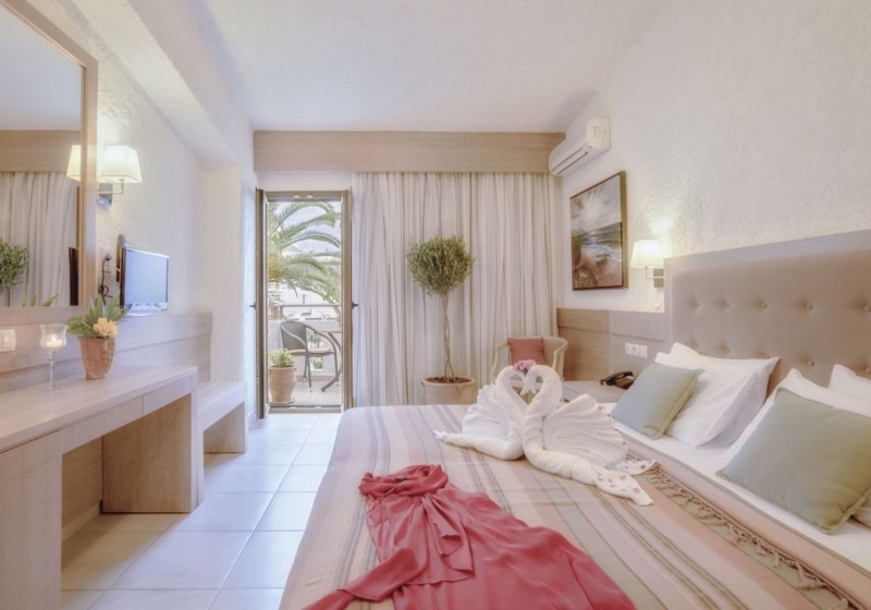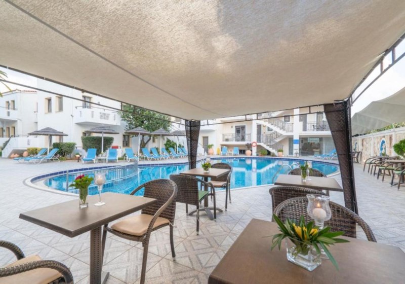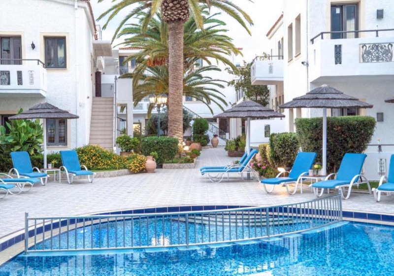 Flamingos Hotel steht für strandnahes Wohnen mit der Freiheit eines Aparthotels: Studios mit Kitchenette, kompakte Wege, Pool mit Kinderbecken und klarer Servicefokus. Die Anbindung nach Chania ist kurz, der Strand fast vor der Tür.