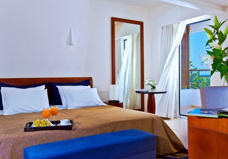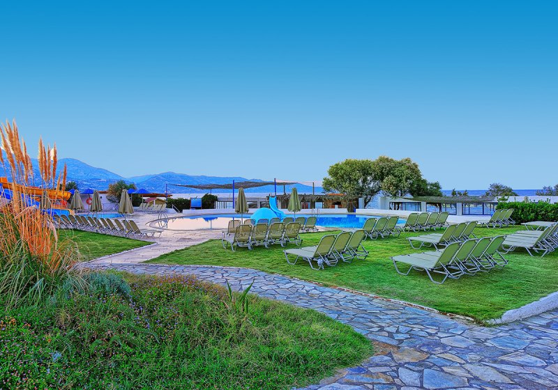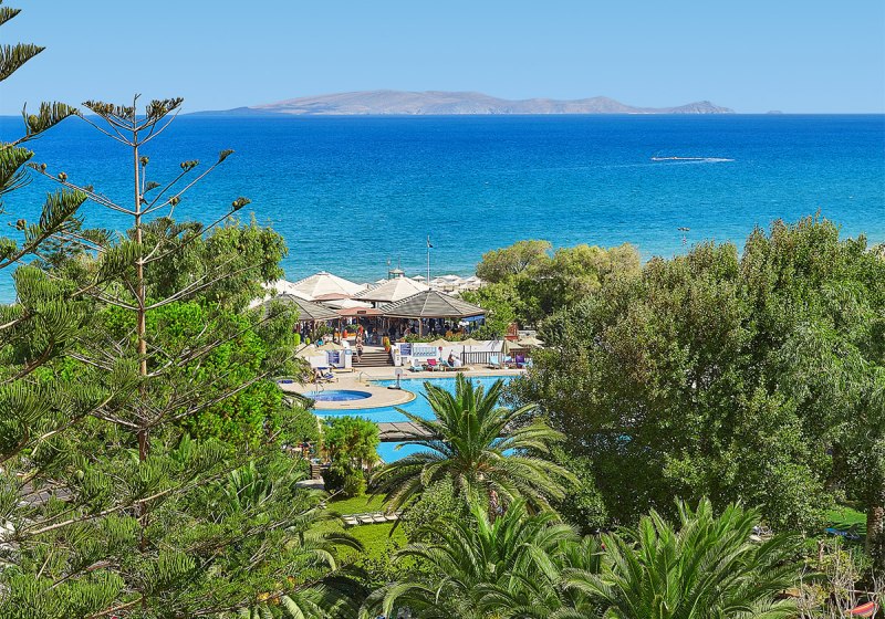 - Strandlage: Direkt am Strand Ammoudara mit kurzen Wegen zu Pools.