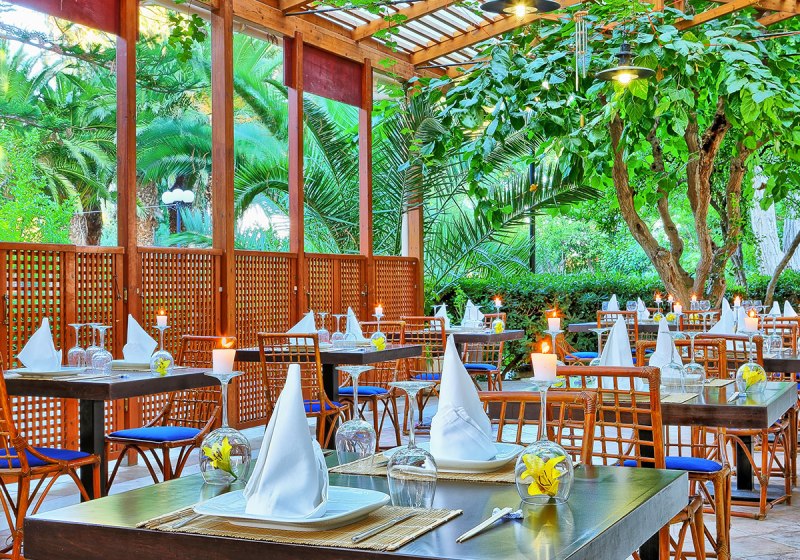 Im Hauptrestaurant nutzt Ihr Buffetvielfalt mit Live-Kochen, ergänzt von All‑Inclusive oder Alternativen wie Halbpension. Drei À‑la‑carte‑Restaurants setzen Akzente: griechische Küche, vegane Spezialitäten und italienische Klassiker strukturieren Eure Abende geschmacklich präzise. Highlight: Veganes À‑la‑carte‑Angebot ergänzt die Auswahl sinnvoll.