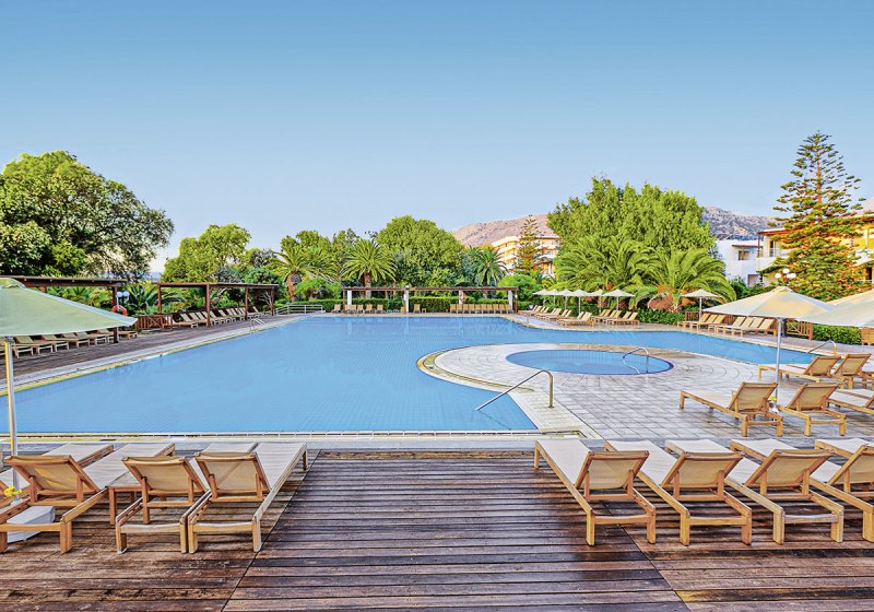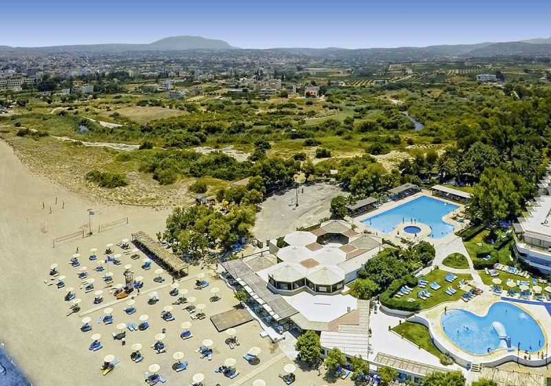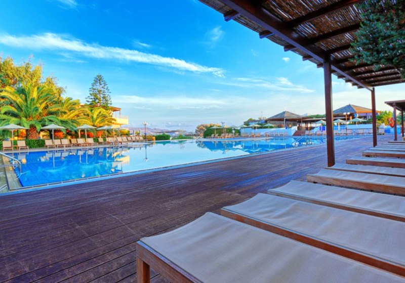 Abends setzt Ihr auf Live‑Musik, Amphitheater oder die Wahl zwischen Indoor‑ und Open‑Air‑Disco. Mit kurzen Distanzen nach Heraklion und zum Flughafen schafft das Resort eine verlässliche Basis für Eure Ferien – klar organisiert, flexibel und nah am Meer.