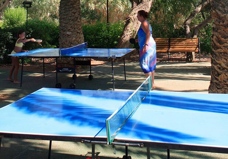 Für den Komfort sorgen Friseur, Parkplätze, Fahrstuhl und Gepäckraum. Aktivzonen mit zwei Wasserrutschen, Minigolf, Minisoccer, Beachvolleyball, Darts, Tischtennis und zwei Tennis‑Hartplätze setzen sportliche Akzente. Abends öffnen Innen‑ und Open‑Air‑Disco, ergänzt vom Amphitheater. Highlight: Kurze Wege zwischen Sportflächen, Pools und Abendbühne.