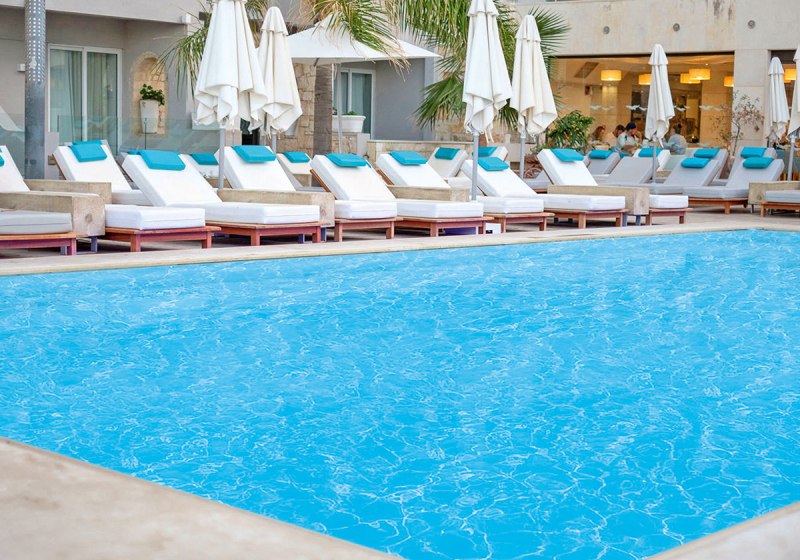- Süsswasserpool: Aussenpool mit Sonnenterrasse als zentraler Treffpunkt.