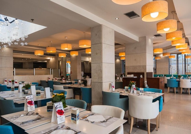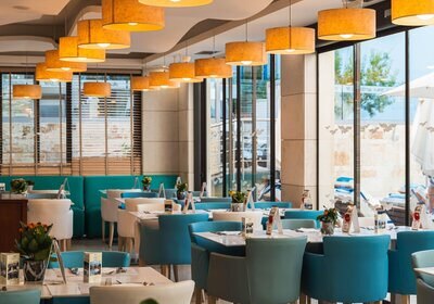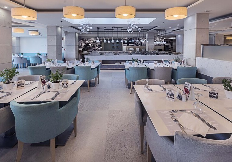 Ihr wählt aus drei À‑la‑carte‑Restaurants, einem Speiseraum und mehreren Bars. Die Pergola‑Lobbybar mit Terrasse sowie die Pool‑/Snackbar bilden die lebendigen Treffpunkte zwischen Strand und Promenade. Kulinarisch spannt Ihr den Bogen vom Frühstück bis zum späten Drink, je nach gewählter Verpflegung.
