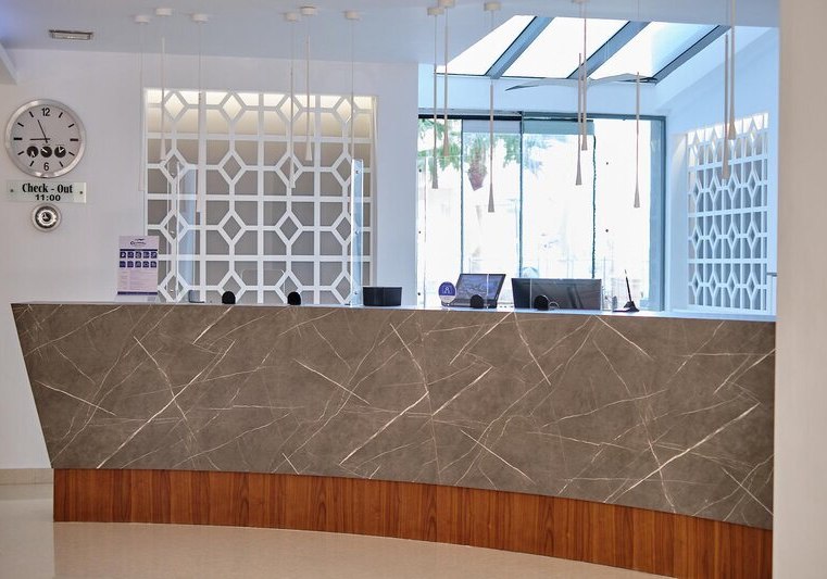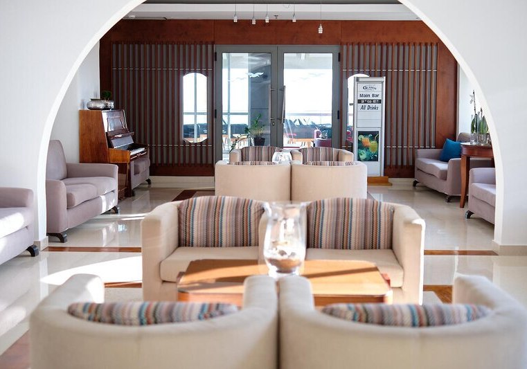 Die Infrastruktur ist auf kurze Wege ausgelegt: Rezeption mit Aufenthaltsbereich, Lobby mit Pergola‑Bar, Aufzug, Garten- und Terrassenflächen sowie eine Sonnenterrasse am Süsswasser‑Aussenpool. WLAN ist verfügbar, laut Veranstalter gegen Gebühr. Ein Minimarkt, Souvenir‑Shop und ein Geldautomat ergänzen die praktische Versorgungsseite.