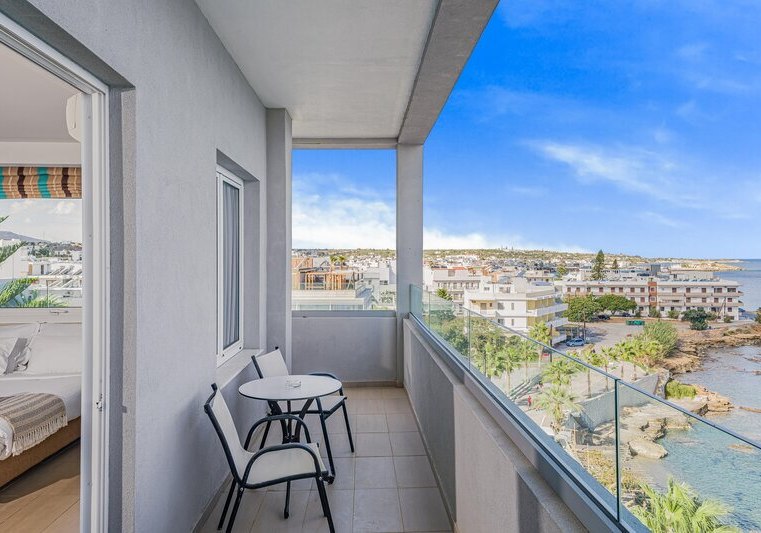 - Promenadenlage: Direkt am Strand und an der Promenade von Chersonissos.