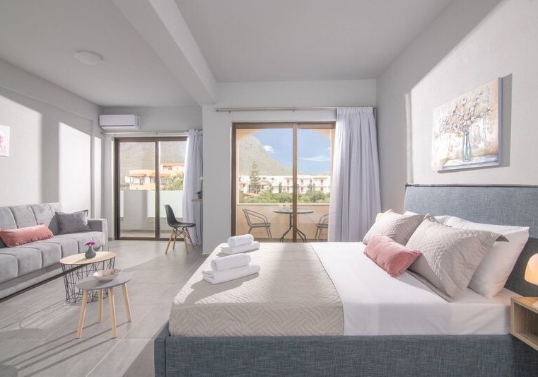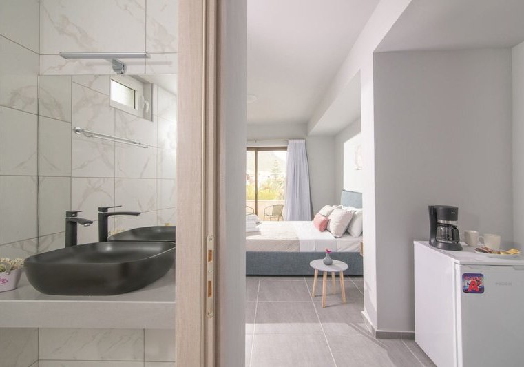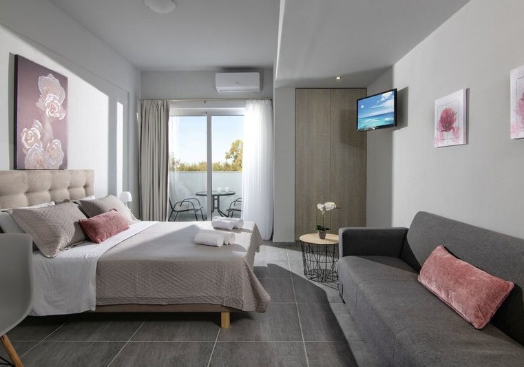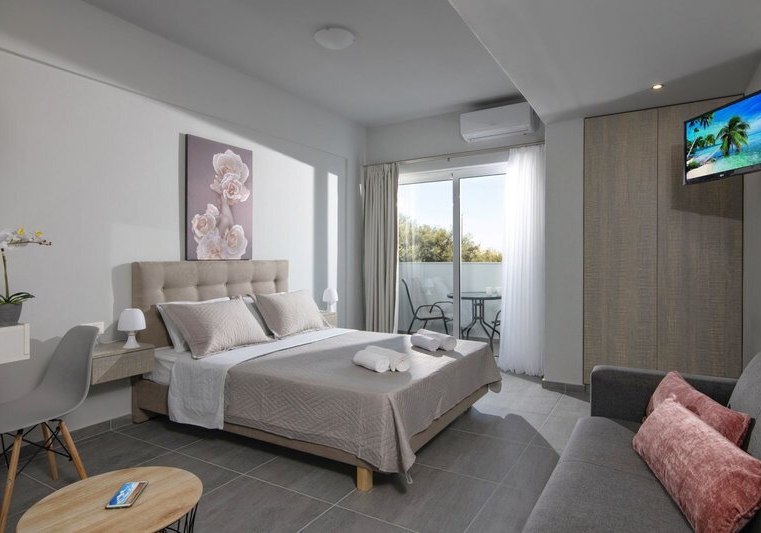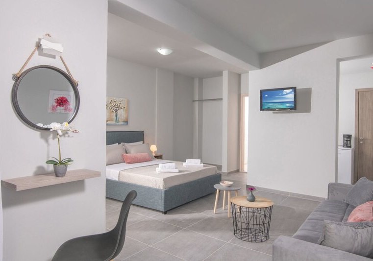 Dank der guten Anbindung über die Bushaltestelle in circa 50 Metern erschließt Ihr Euch die regionale Unterhaltung in Hersonissos, Malia oder Heraklion bequem. Familien profitieren von der kompakten Größe und dem klaren Ablauf im Haus, während Paare die Unaufgeregtheit schätzen. Der Tag klingt leise aus – wahlweise am Pool, an der Bar oder bei einem Abstecher in die Nachbarschaft.
