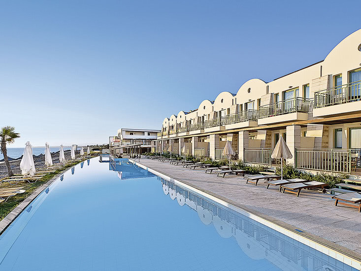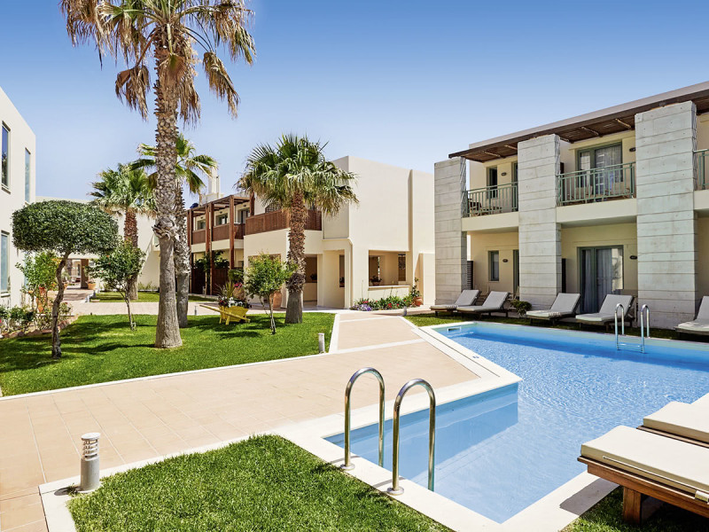 Grand Bay Beach Resort steht für Adults-only-Ruhe direkt am Strand von Kolymbari, mit vier Außenpools, klarer Service-Struktur und vielseitiger Küche vom Buffet bis À-la-carte. Die Lage verbindet Strandnähe mit kurzen Wegen, Chania liegt rund 25 Kilometer entfernt.