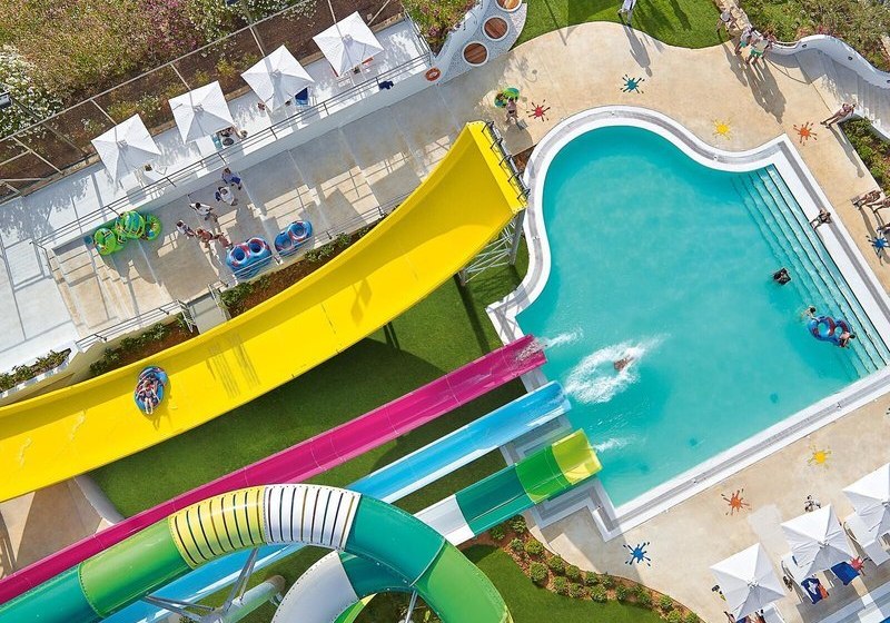 Ihr wohnt unmittelbar neben dem Aquapark „Kingdom of Poseidon“ und habt gleich sieben Pools zur Wahl. Kulinarisch warten sechs Restaurants und sieben Bars, dazu All-Inclusive mit Live-Kochen und vielfältigen Optionen. Abends wird es mit Shows und Live-Musik gesellig. Für Kinder gibt es Miniclub und Mini-Disco.