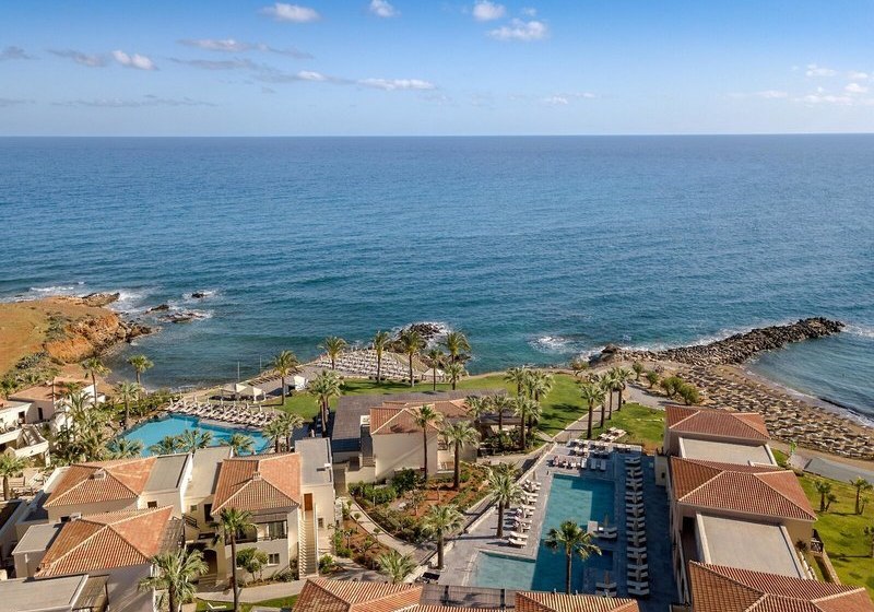 „Für eure perfekten Ferien am Strand mit großem Aquapark, weitläufigen Poolbereichen und abwechslungsreicher Küche empfiehlt sich Grecotel Marine Palace & Aqua Park als komfortables Resort mit lebendiger Atmosphäre, starker Familienausrichtung und kurzen Wegen an den Strand.“