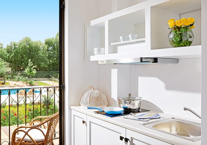 Im kompakten Apartmenthotel Grecotel Villa Oliva wohnt Ihr in einer überschaubaren Anlage mit 21 Einheiten, die Ruhe und Selbstständigkeit verbinden. Der Charakter ist wohnlich: Kitchenettes in den Zimmern, Balkon oder Terrasse, dazu ein Süßwasser-Außenpool mit Sonnenterrasse. Die Wege sind kurz, die Abläufe klar, die Rezeption ist rund um die Uhr besetzt. Highlight: Überschaubares Apartmenthotel mit 21 Einheiten und viel Unabhängigkeit.
