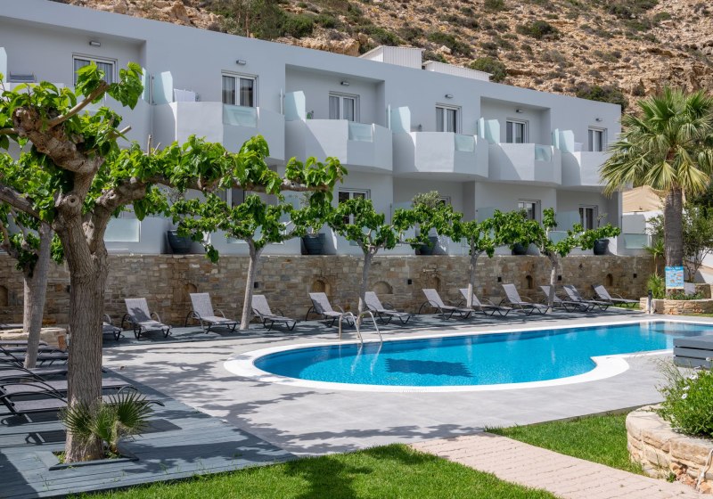Hotel Calypso bietet Euch eine klare Basis in Matala: nah am Zentrum, nahe am Strand, mit Außenpool, Sonnenterrasse und familienfreundlichen Bereichen. WLAN in der gesamten Anlage und die durchgehende Rezeption geben Eurem Aufenthalt Struktur und Flexibilität ohne Umwege.