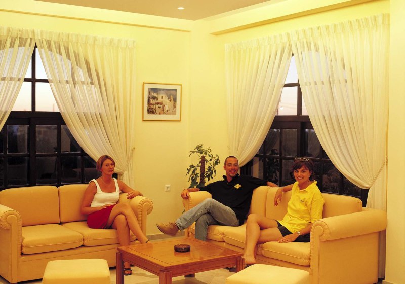 Die Gemeinschaftsbereiche sind kompakt organisiert: Lobby mit Rezeption, kostenfreies WLAN in der gesamten Anlage und eine Internet-Ecke gegen Gebühr. Draußen dominiert der Süßwasserpool mit separatem Kinderbecken. Auf der Sonnenterrasse warten Liegen und Schirme, der Spielplatz ergänzt das Familienprofil.