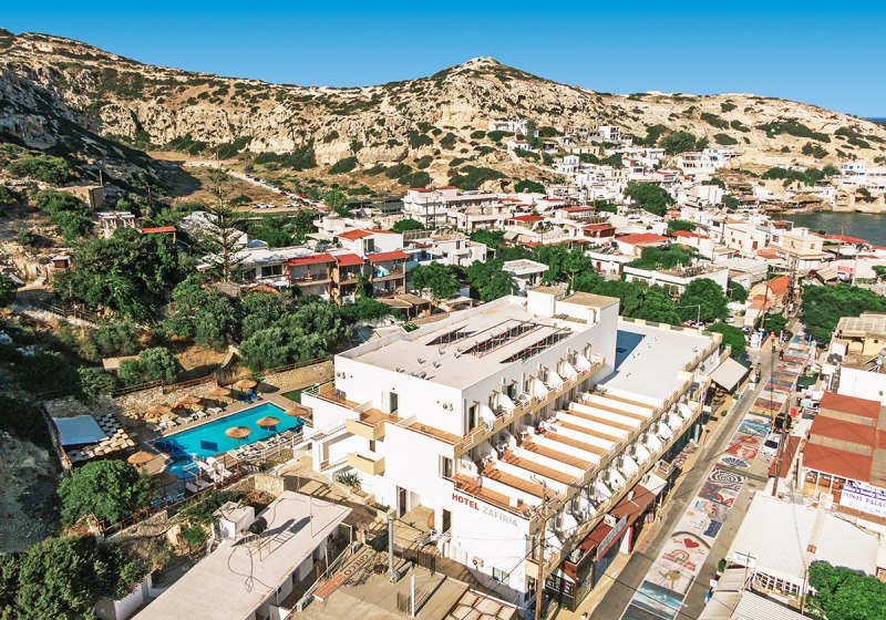 Hotel Zafiria verbindet zentrale Lage in Matala mit nur 50 Metern zum Strand, renovierter Substanz von 2022 und klarer Ausstattung. Pool, Kinderbecken, Sonnenterrasse und eine Poolbar strukturieren Eure Tage zwischen Badestopp und Abenddrink.