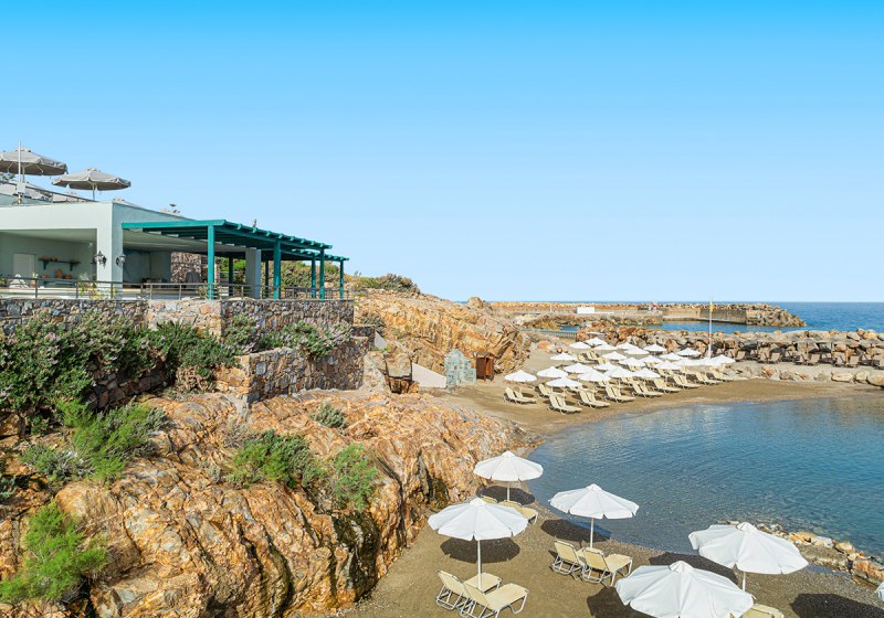 Ihr wohnt unmittelbar am Meer, mit drei hoteleigenen Sand-Kiesbuchten direkt vor der Tür. Bis Panormo sind es etwa 3 Kilometer, nach Rethymnon rund 18 Kilometer. Eine Bushaltestelle erreicht Ihr in circa 50 Metern, das Meer liegt etwa 100 Meter entfernt. So bleibt Ihr mobil und gleichzeitig nah an ruhigen Küstenmomenten.
