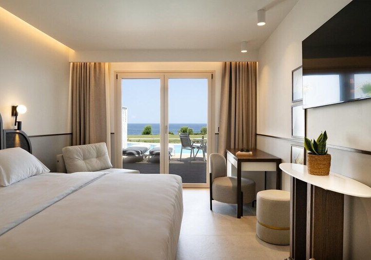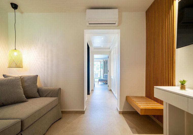 Dusche, WC und Föhn gehören zur Grundausstattung; Minibar ist gegen Gebühr verfügbar. Je nach Kategorie blickt Ihr in den Garten oder auf das Meer, teils in erster Reihe am Wasser. Nichtraucherzimmer sind ausgewiesen, Kinderbetten sowie Schlafsofa-Optionen runden das Familienangebot ab. Highlight: Waterfront-Kategorien bringen Euch besonders nah ans Meer.