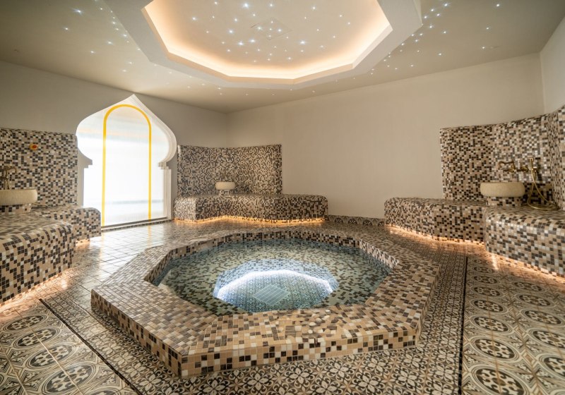 Der Spa-Bereich kombiniert Sauna, Dampfbad und Whirlpool mit einem Hallenbad aus Süßwasser. Damit bleibt Ihr wetterunabhängig und habt Rückzugsorte neben den Außenpools. Anwendungen wie Massagen und Angebote der Beautyfarm ergänzen das Programm.