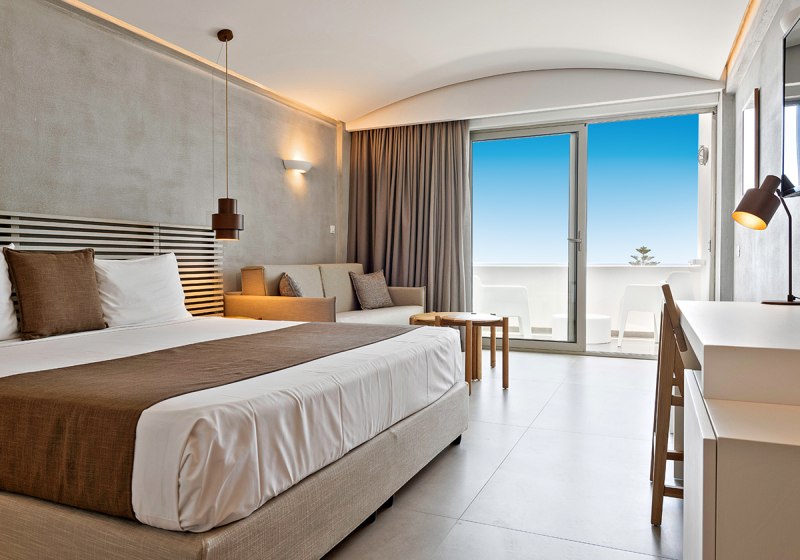 Eure Zimmer bieten Balkon oder Terrasse, WiFi, Klimaanlage und Safe; viele mit Meer- oder Gartenblick. Ausstattungen wie Bademantel, Hausschuhe, Kaffee-/Teezubereiter, Kühlschrank und Fernseher steigern den Komfort, ein Queensize-Bett sorgt für ruhige Nächte. Highlight: Schlafsofa als flexible Option für Mitreisende.