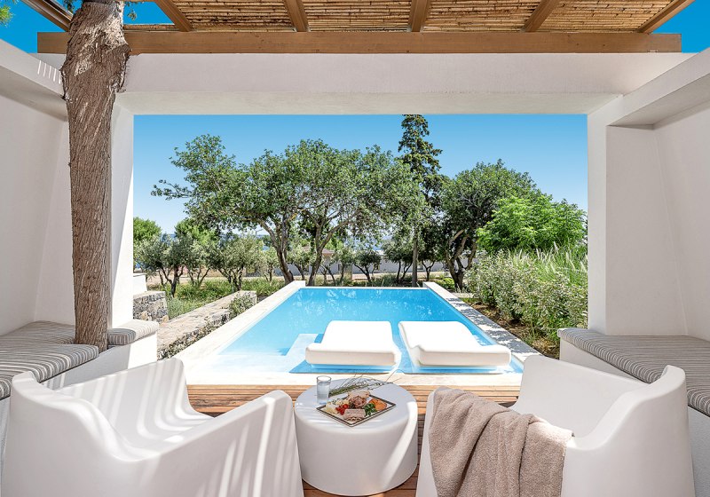 Besonders gefragt: Bungalowzimmer mit privatem Pool – ideal für ungestörte Badezeiten direkt vor Eurer Tür. Außenmöbel erweitern den Wohnraum nach draußen. Badezimmer sind mit Dusche, Haartrockner und Kosmetikartikeln ausgestattet. Highlight: Private-Pool-Bungalows verbinden Rückzug und unmittelbares Wassererlebnis.
