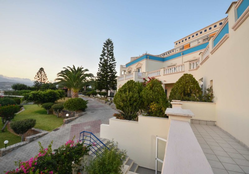 Ihr wohnt in Ierapetra in ruhiger Lage. Der Sand-/Kiesstrand liegt etwa 700 Meter entfernt, somit erreicht Ihr das Meer bequem zu Fuß. Zum Flughafen Heraklion sind es rund 95 Kilometer, eine Distanz, die eine gut planbare An- und Abreise ermöglicht. Vor Ort schafft die kompakte Umgebung kurze Wege innerhalb der Anlage.