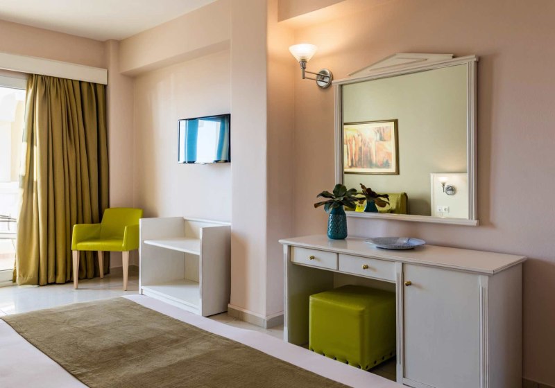 Ihr wählt zwischen Doppelzimmer, Juniorsuite mit Meerblick und Suite mit Meerblick und separatem Schlafzimmer. Alle Wohneinheiten bieten Bad oder Dusche/WC, Föhn, individuell regulierbare Klimaanlage, WLAN, Flatscreen-Sat-TV, Telefon und Minikühlschrank. Balkon oder Terrasse erweitert den Raum ins Freie.