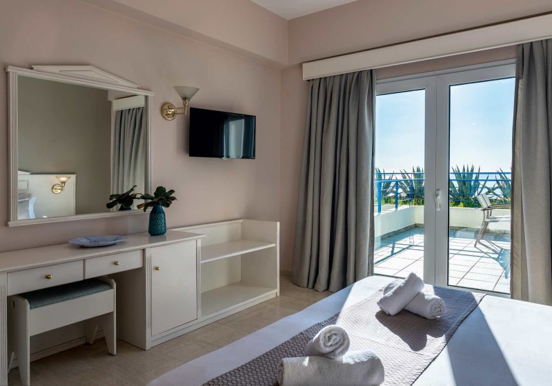 - Klare Wahl: Doppelzimmer, Juniorsuiten Meerblick und Suiten mit Meerblick.