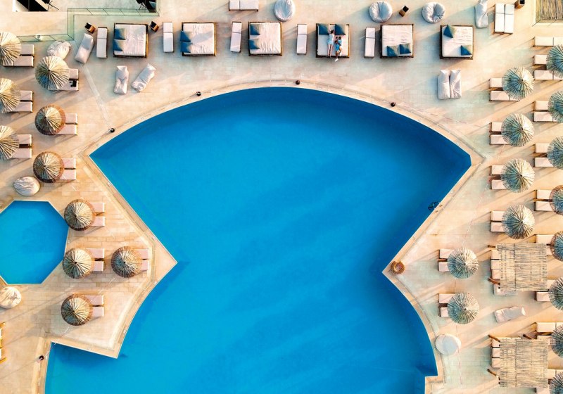 - Poollandschaft: Fünf Außenpools plus Kinderbereiche mit zwei Wasserrutschen.