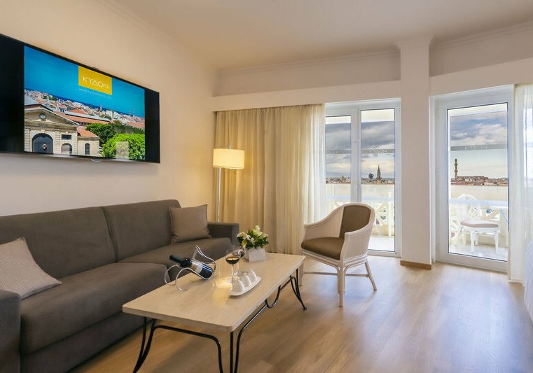 Im Kydon, The Heart City Hotel wohnt Ihr mitten im Zentrum von Chania – urban, aufgeräumt und nah an allem, was die Stadt ausmacht. Das Haus wirkt wie eine verlässliche Basis: klare Linien, durchdachte Services und ein Fokus auf Komfort. Familien profitieren von kindgerechten Extras, Städtereisende von der direkten Lage und stabilen Verbindungen.