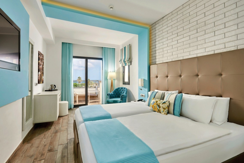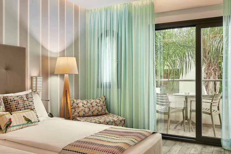 Die Nichtraucherzimmer des Hotels sind jeweils mit Terrasse oder Balkon ausgestattet. Alle Zimmer haben eine Klimaanlage und eine Heizung, ein Badezimmer mit Badewanne oder Dusche, einen Haartrockner, ein Radio, einen Fernseher und einen Safe. Wi-Fi ist in allen Zimmern verfügbar. Familienzimmer und Kinderbetten stehen zur Verfügung.