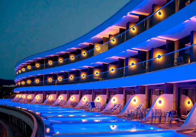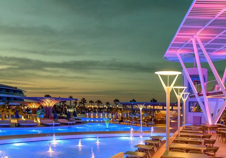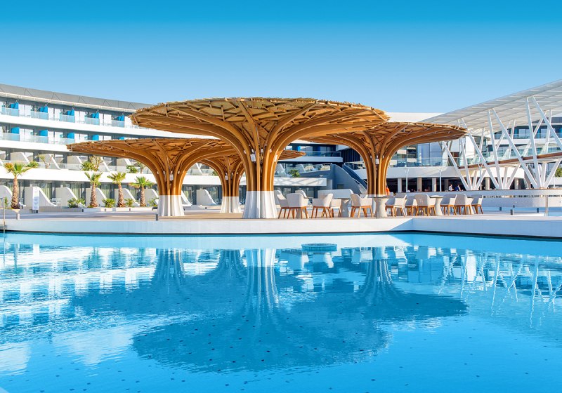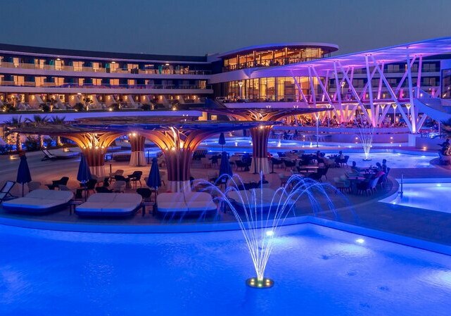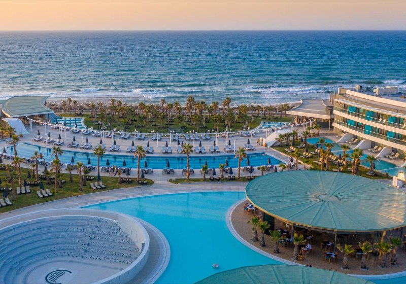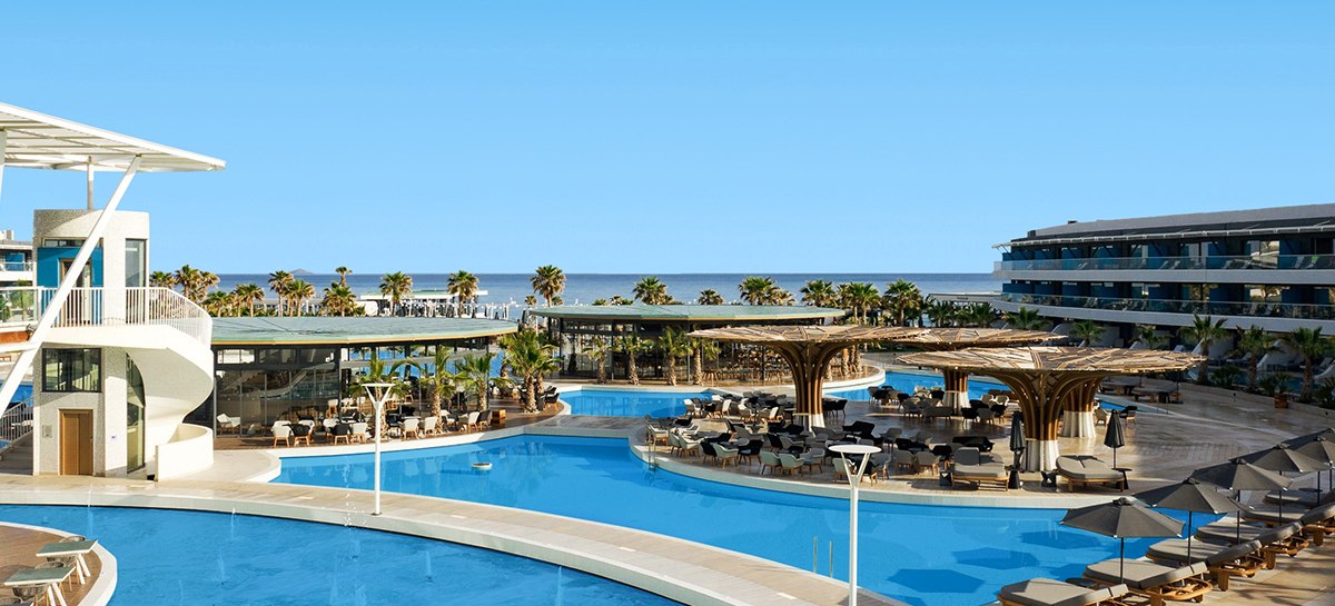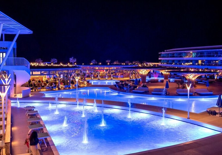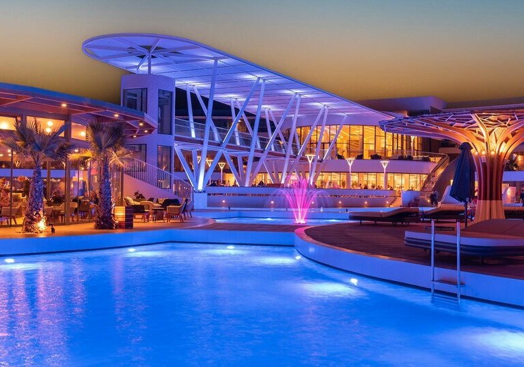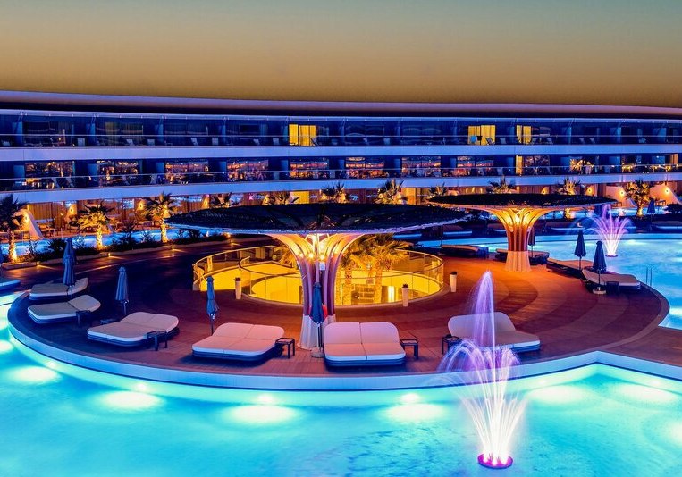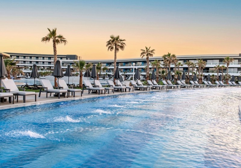 - Wasserflächen: Mehrere Pools inklusive Meerwasserbecken und Kinderbereich.