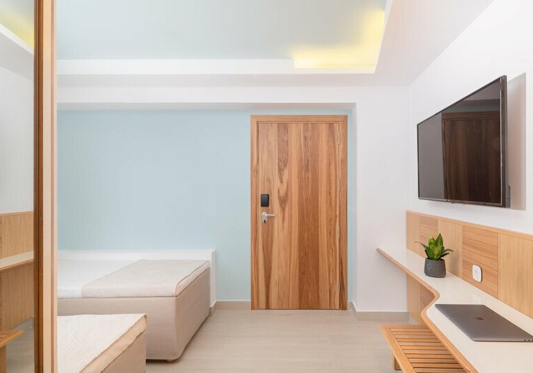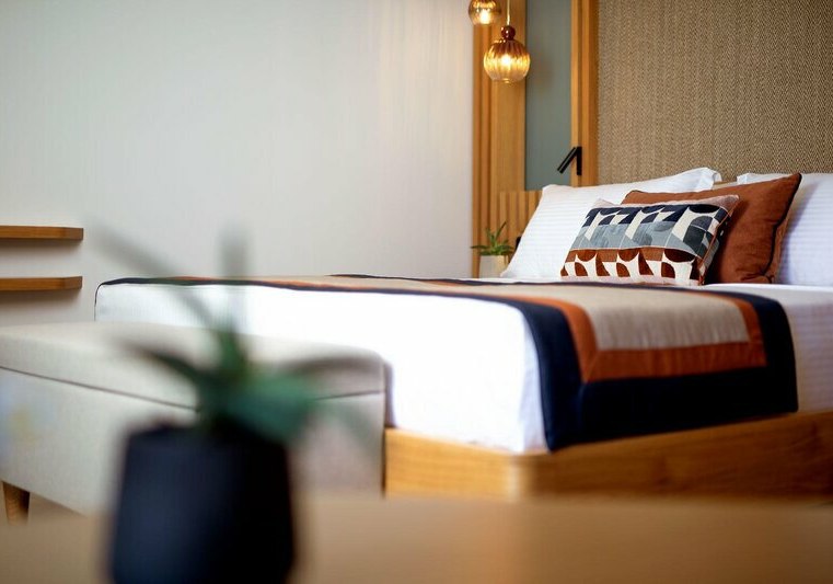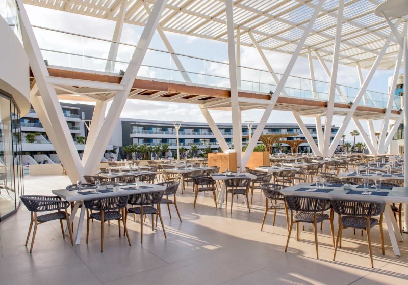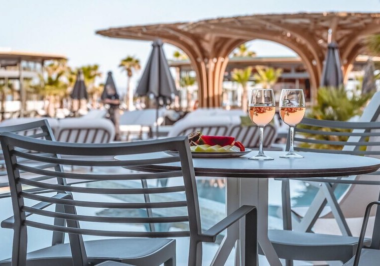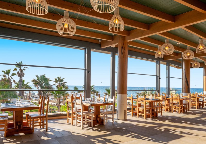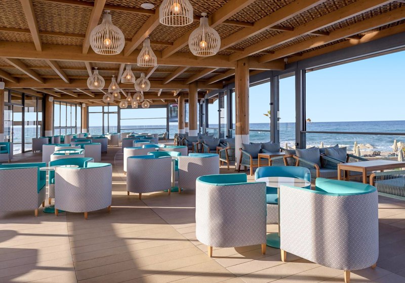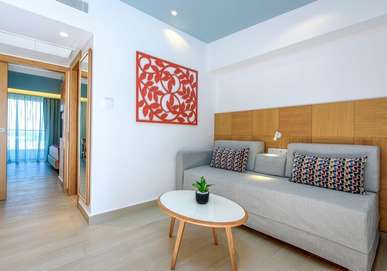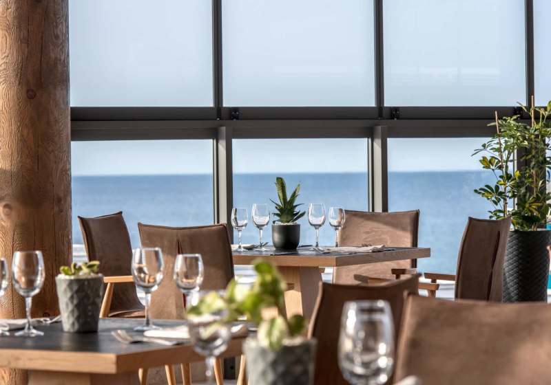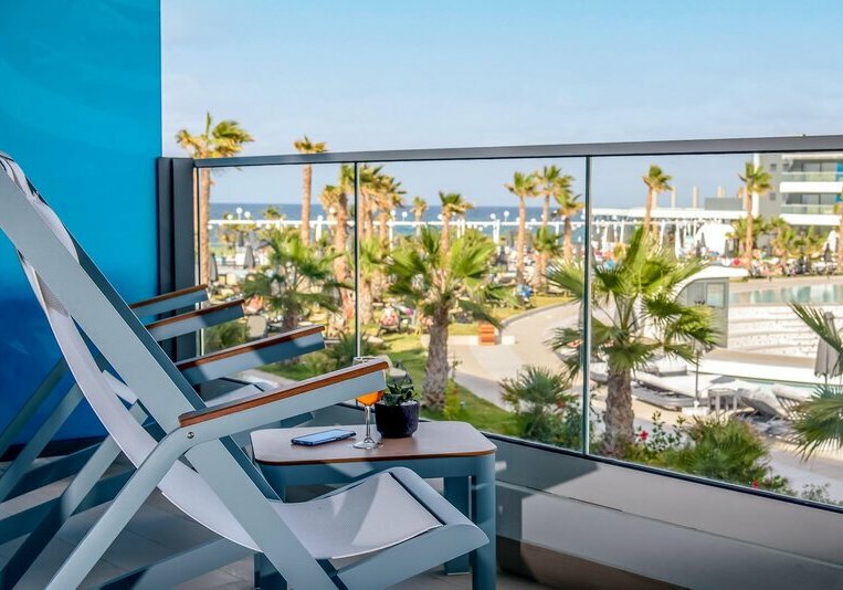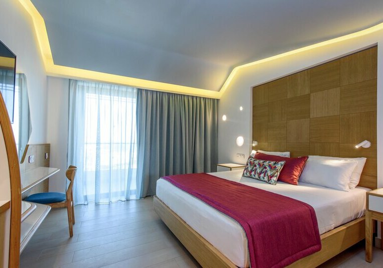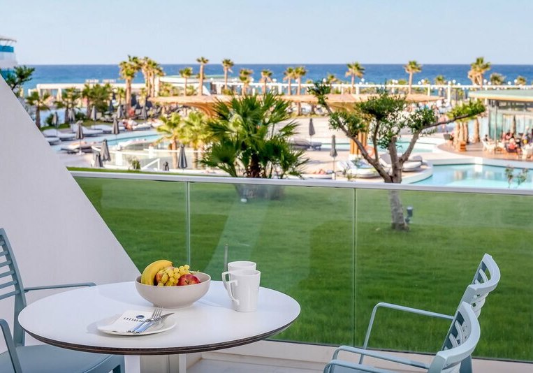 Die Zimmer verbinden Ruhe und Funktion: Klimaanlage, Schallisolation und Verdunkelungsvorhänge schaffen verlässliche Erholung. Balkon oder Terrasse öffnet den Blick – je nach Kategorie auf Meer, Garten, Pool oder Strand. Highlight: Wahlweise Meerblick für den ersten Kaffee mit Horizont.