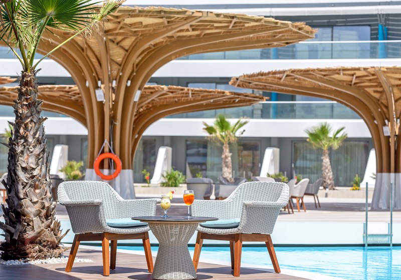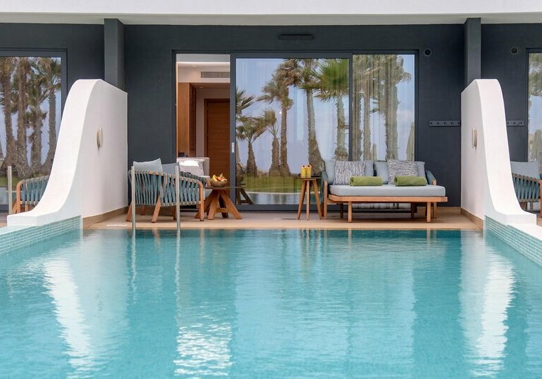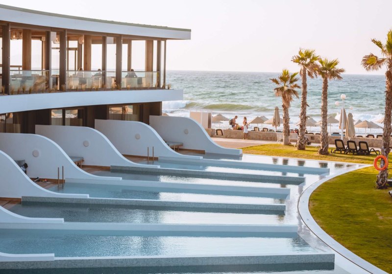 Mit vier Meerwasserpools, Hallenbad, Sauna und dem Zugang zum Wasserpark im Schwesterhotel erweitert Ihr Eure Strandtage um sportliche und ruhige Sequenzen. Die Wege sind kurz, die Auswahl gross – ideal für die nächsten Ferien mit Meerfokus.
