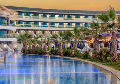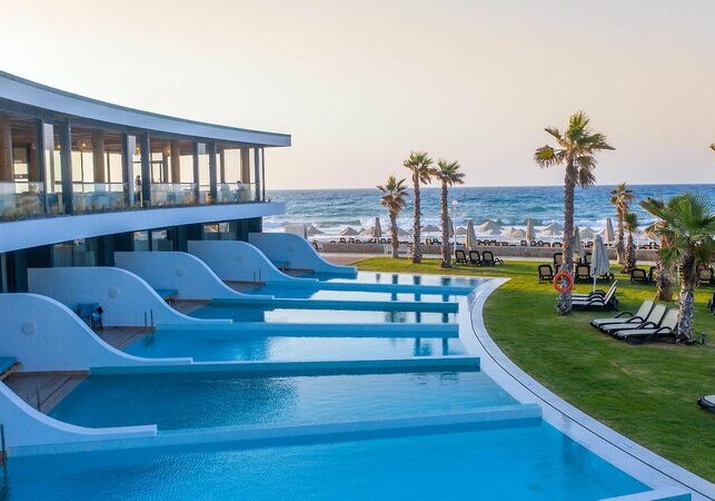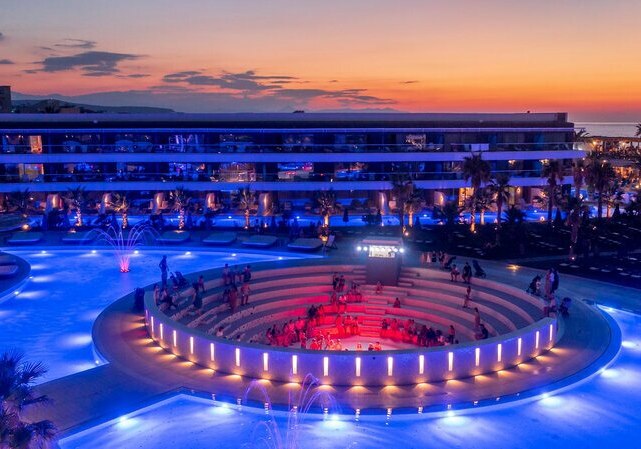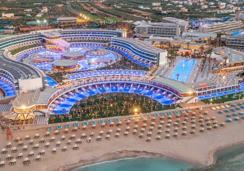 Lyttos Mare empfängt Euch in Analipsis direkt am Sandstrand von Kreta, mit einer klaren Ausrichtung auf Strandliebhaber, Aktive und Familien. Die Anlage wirkt modern und weitläufig, mit Ruheinseln am Wasser und lebendigen Bereichen rund um Shows und Bars. Highlight: Direkte Strandlage mit kurzen Wegen zwischen Meer, Pools und Restaurants.